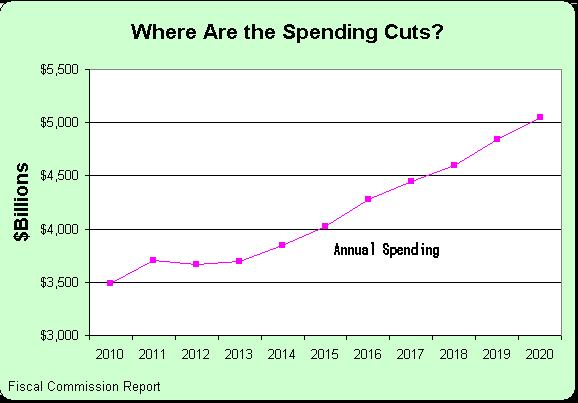 Much to my chagrin, it turns out that the federal government will increase by about $1.5 trillion between 2010 and 2020 according to the Commission’s numbers. Here’s a chart based on the data from page 57.