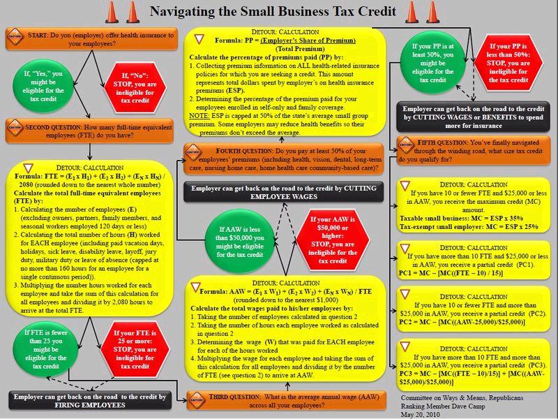 So what happens when you mix bad tax policy and bad health care policy? Well, you get this chart, which shows the maze that small business owners must navigate in order to comply with a new Obamacare tax credit.