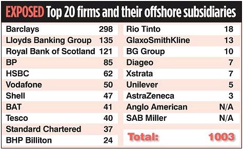 There’s a supposed expose in the U.K.-based Daily Mail about how major British companies have subsidiaries in low-tax jurisdictions. It even includes this table with the ostensibly shocking numbers.