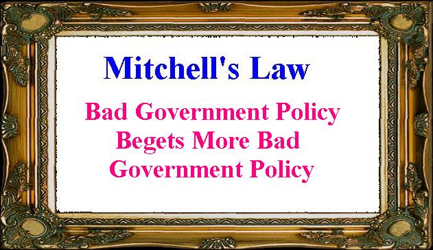 Last year, I came up with a saying that “Bad Government Policy Begets More Bad Government Policy” and labeled it “Mitchell’s Law” during a bout of narcissism.