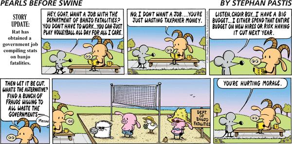 I’ve done a video on excessive compensation for bureaucrats and I’ve written many times about wasteful spending, but here’s a cartoon that manages to effectively combine both concepts.