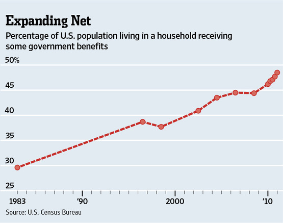 So you will understand that I am utterly depressed by this new chart from the Wall Street Journal showing that nearly half of all American households receive some sort of government handout.