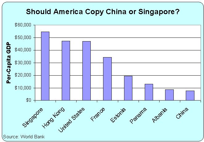 But if I can’t choose one of those Asian tigers, I’ll stick with the U.S. system. Americans, after all, are about six times better off than the Chinese. Heck, China is still behind Albania.