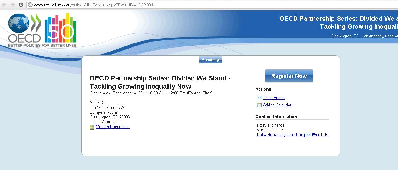 And now, just when you thought things couldn’t get worse, the OECD has opened a new front in its battle against America. The bureaucrats from Paris have climbed into bed with the hard left at the AFL-CIO and are pushing a class-warfare agenda. Next Wednesday, the two organizations will be at the union’s headquarters for a panel on “Divided We Stand – Tackling Growing Inequality Now.”