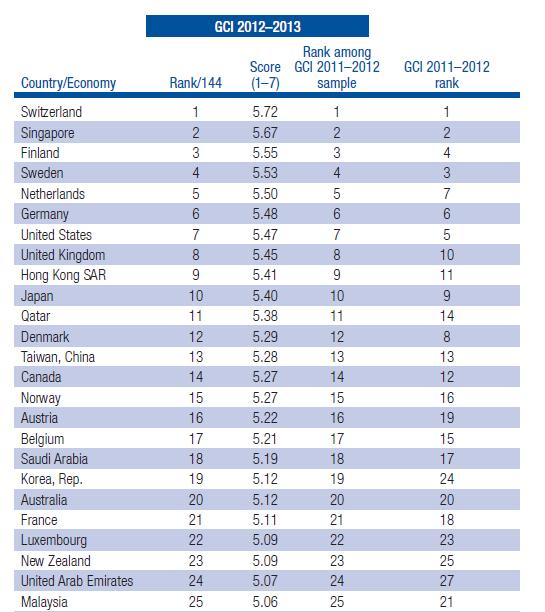 The United States took the top spot in the WEF’s Global Competitiveness Index as recently as 2007 and 2008, but then dropped to 2nd place in 2009.