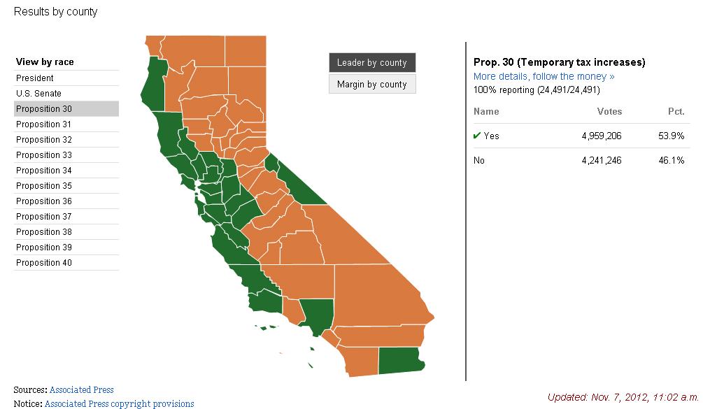 Yes, I realize that the politicians and interest groups structured the measure so that the majority of voters would be unaffected. It was basically a class-warfare proposal, with a small fraction of the population being targeted to generate (at least in theory) a bunch of revenue that could be used to maintain a bloated and over-compensated state bureaucracy.