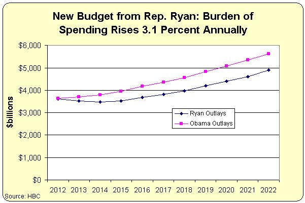 But the very good shouldn’t be the enemy of the good. As noted already, Congressman Ryan’s plan meets the most important test, which is restraining spending so that the federal budget grows slower than the private economy. And, as the chart shows, he obviously imposes more fiscal restrain then President Obama.