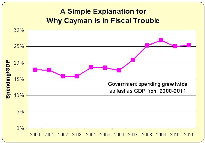 What’s remarkable is that the federal government and the Cayman Islands government have followed very similar paths to fiscal trouble. Indeed, Caymanian politicians have achieved the dubious distinction of increasing the burden of government spending at a faster rate than even Bush and Obama. No mean feat.