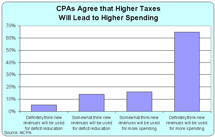 As you can see, they were even more skeptical than the general public, with more than 60 percent definitely thinking that more revenue in Washington will lead to more spending.