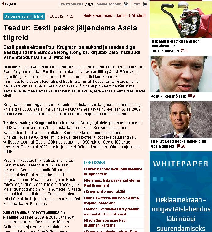 Last month, I exposed some major errors that Paul Krugman committed when he criticized Estonia for restraining the burden of government spending.