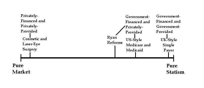 Here’s a back-on-the-envelope image I created to show the spectrum of healthcare policy. It’s obviously very simplified, but I think the overall point about Ryan’s reforms being very incremental is correct.