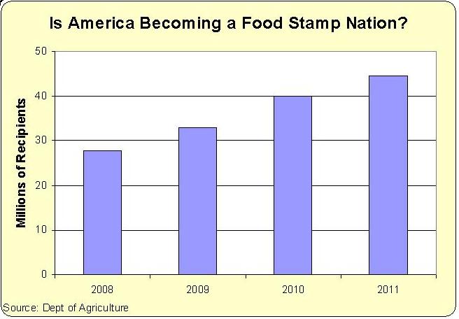 Last year, I semi-defended Newt Gingrich when he was attacked for calling Obama the “Food Stamp” President. Citing this chart, I wrote that, “It certainly looks like America is becoming a food stamp nation.”