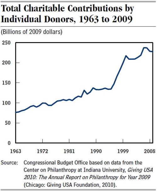 …more than 80% of those who itemized their tax returns in 2009 claimed the charitable deduction and were responsible for more than 76% of all individual contributions to charitable organizations.