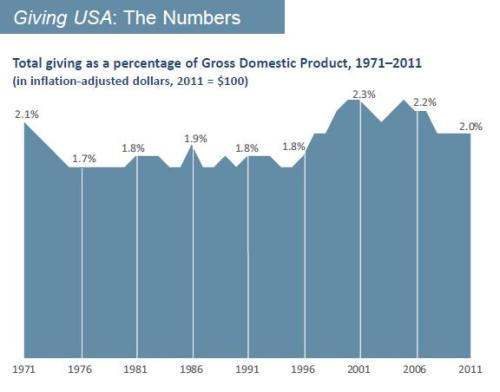 …the best way to help charities is to boost economic growth, which leaves people with more money to donate. And I think the best way to do that is to replace our current system with a simple and fair flat tax. …I don’t think there’s a compelling argument for the charitable deduction. …Over the decades, there have been major changes in tax rates and thus major changes in the tax treatment of charitable contributions. At some points, there has been a big tax advantage to giving, at others much less. Yet charitable giving tends to hover around 2% of U.S. gross domestic product, no matter what the incentive.